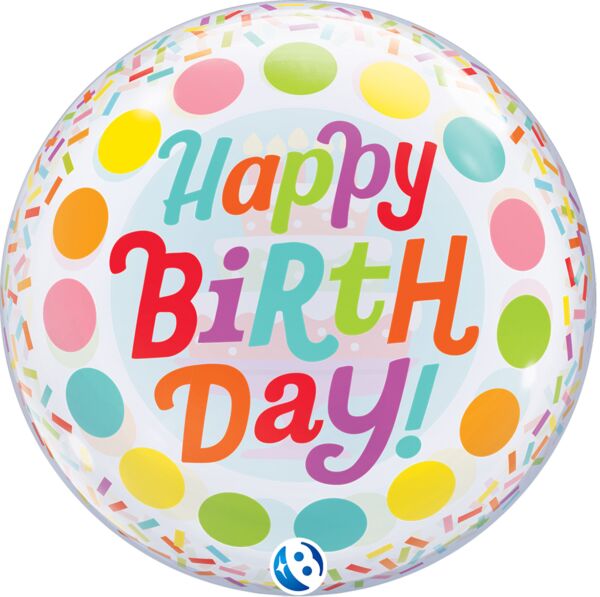 Happy Birthday Cake Colorful Dots 22″ Bubble Balloon